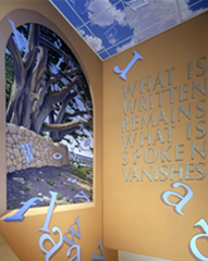 Ocean View Library, San Francisco by John Wehrle. “Words Fly Away” Incised Text and Painting (Photo © 2004 Said Nuseibeh)