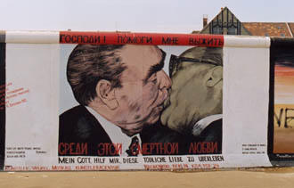 Bruderkuss by Dmitri Vrubel, the East Side Gallery of the Berlin Wall, Germany, 1990. (Photo © Dmitri Vrubel) |