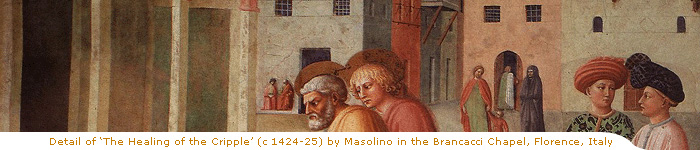 The simplest way to understand fresco painting and its stunning impact on the mood or atmosphere of a building or surrounding is to visit one. You can still view and enjoy many Renaissance frescoes in their original locations in exactly the same way as they were viewed 500 years ago. It may even put you in the mood to see more recent examples. At Frescoes Forever we re-introduce this luminous art form so that more people can appreciate its true beauty. We invite you to visit any one of the frescoes illustrated on this site and to enjoy discovering the achievements of the artists of the Renaissance movement that inspired us to continue their tradition. We hope you’ll take the opportunity to visit these frescoes in person once you’ve taken a look at them online. Please click on the titles below for details of the fresco locations we have featured on this site and their visiting hours. 'Fall of the Titans' (1526-34) by Giulio Romano, from the Sala dei Giganti, in Palazzo del Te, Mantua, Italy 'The Delphic Sybil' (1509) by Michelangelo in the Sistine Chapel, the Vatican, Rome, Italy 'The Stoning of St Stephen' (c1435) by Paolo Uccello in Prato cathedral, Prato, Italy 'The World Wall' (2002) ‘The World Wall - A Vision of the Future Without Fear’ by Judy Baca is a series of eight portable mural panels, each measuring ten feet by thirty feet, assembled into a 100-foot diameter circle. 'The Healing of the Cripple' (c1424-25) by Masolino in the Brancacci Chapel, Church of Santa Maria del Carmine, Florence, Italy 'Miracle of the Spring' (c1297-1300) by Giotto in the Upper Church, Basilica of San Francesco, Assisi, Italy |
